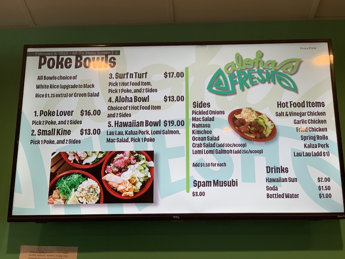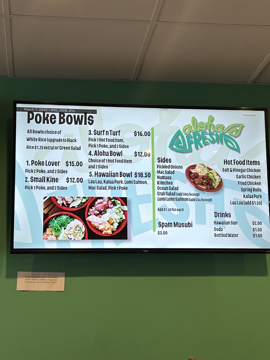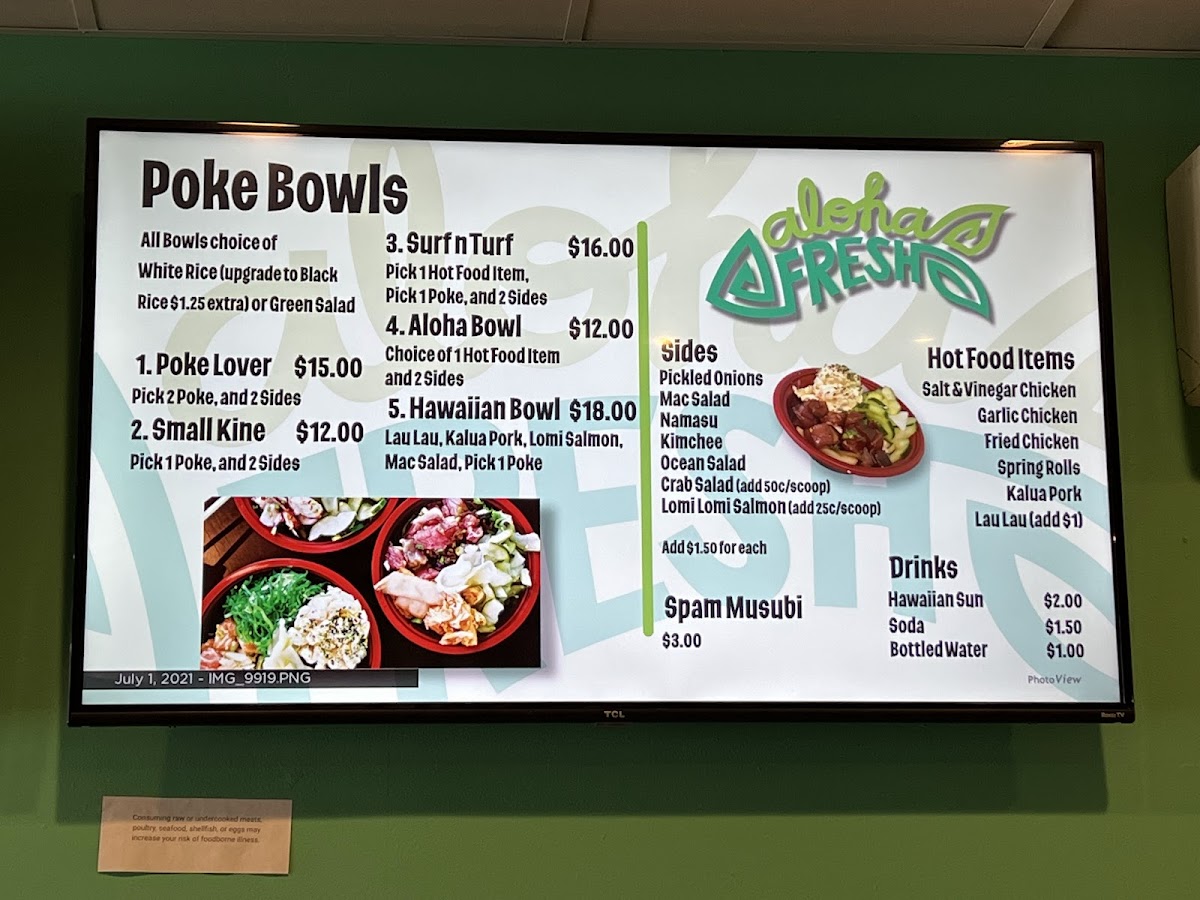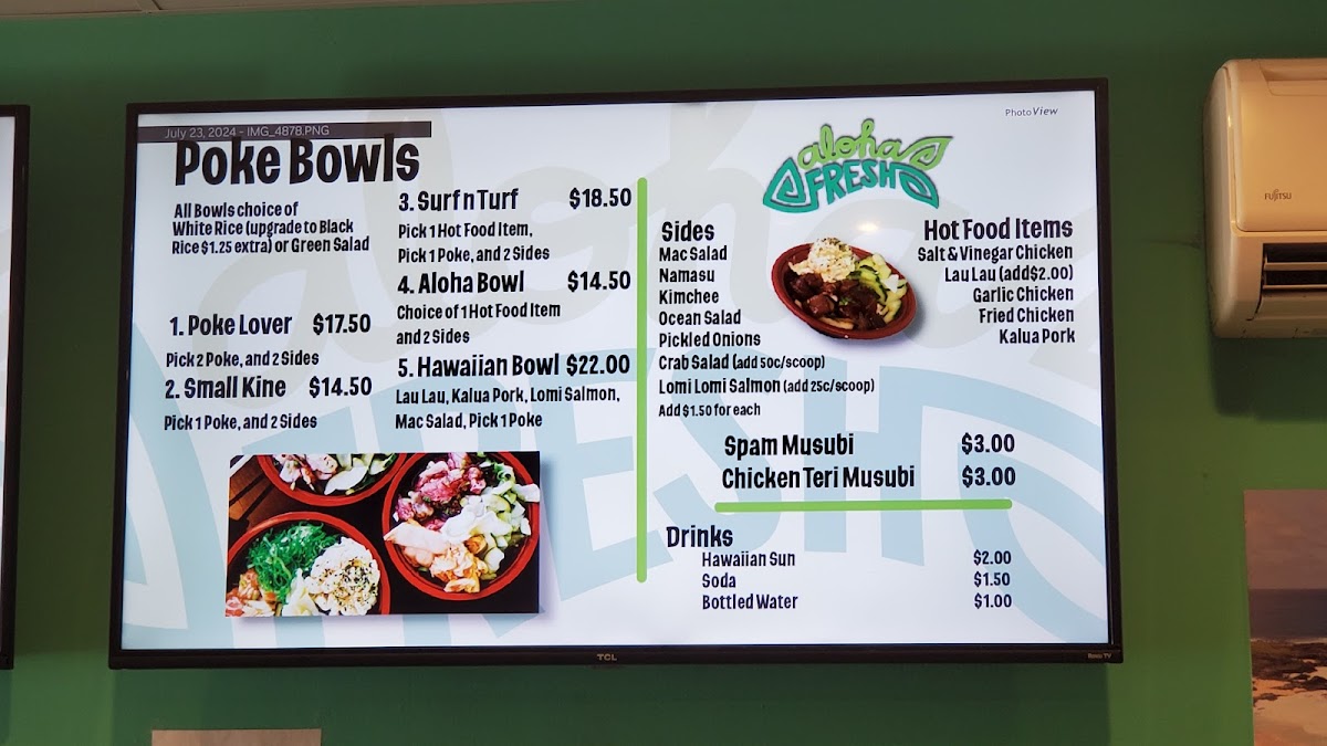 In addition to their mouthwatering dishes, Aloha Fresh offers a range of utilities including delivery, takeout, and catering services. The restaurant is wheelchair accessible and even offers QR code menus for added convenience.