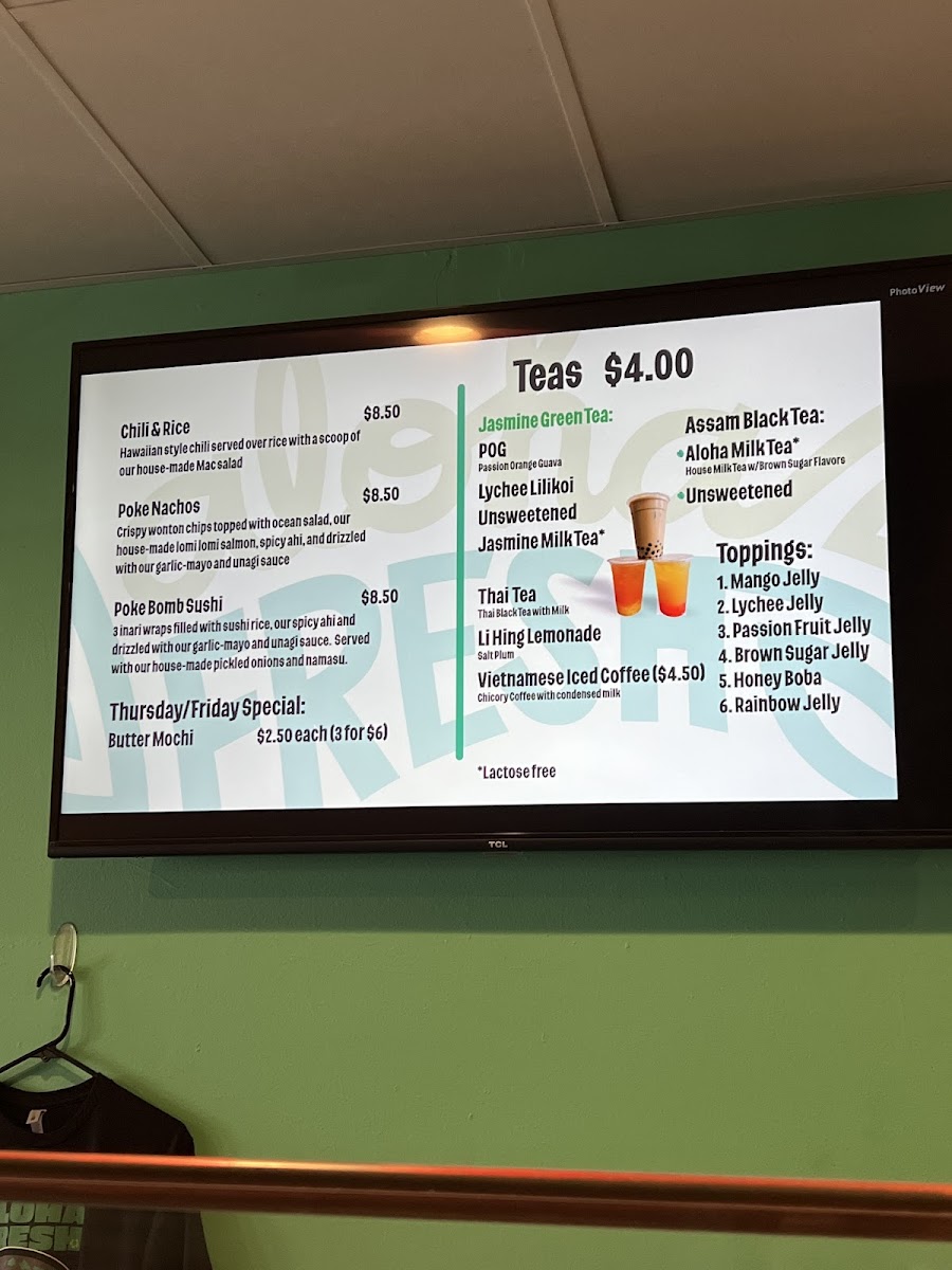 the food is amazing!! definitely check out if you’re in the area! however, i was disappointed with the butter mochi and the drinks were yummy but definitely overpriced.